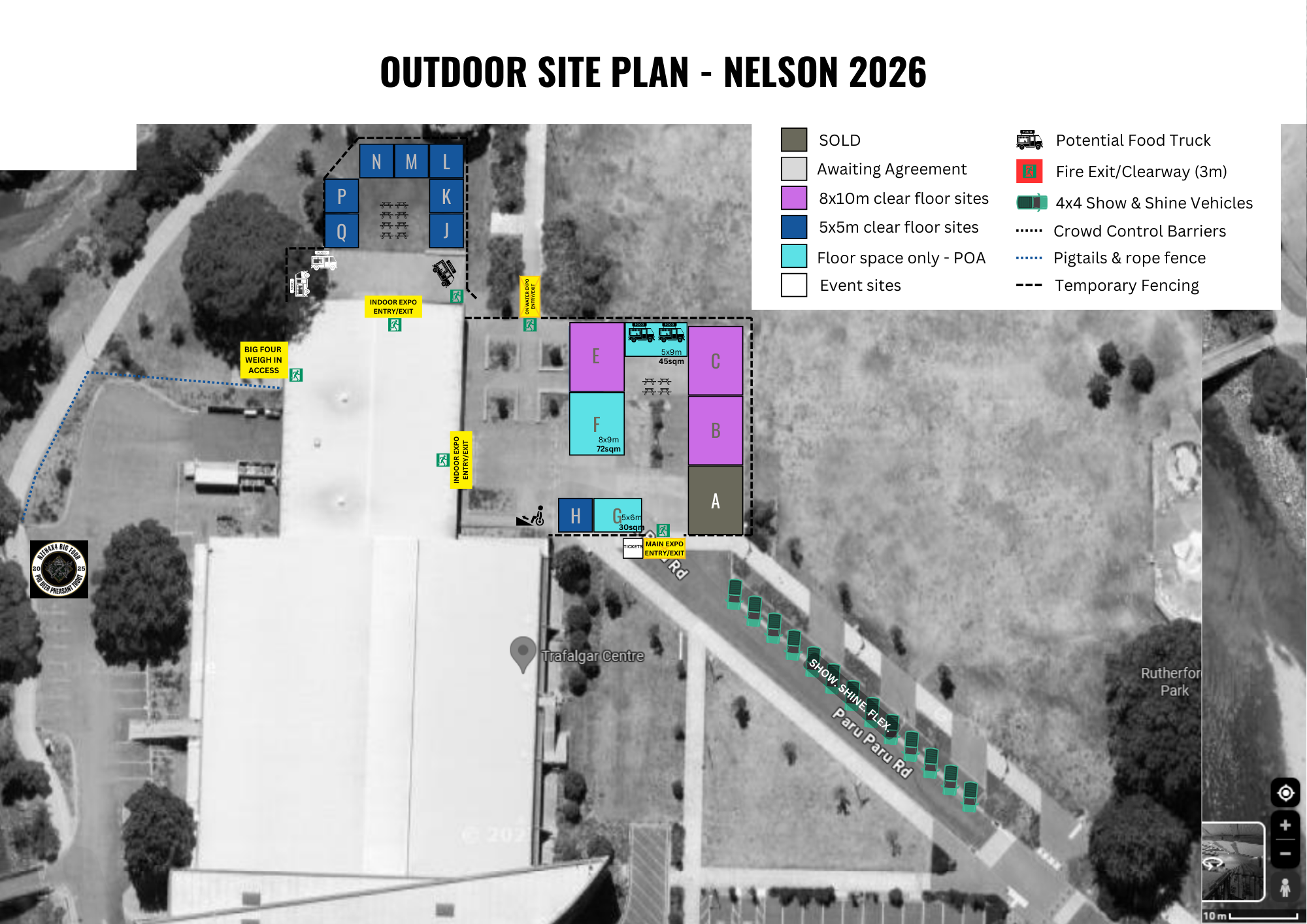 Thanks for your interest in this expo, below are our site maps with current availability. Grey squares (light or dark are unavailable currently). These maps are for your viewing only and are not intended for the general public to view. If you’re ready to lock in some space email Karrie-Ann at hello@intrinsicevents.co.nz